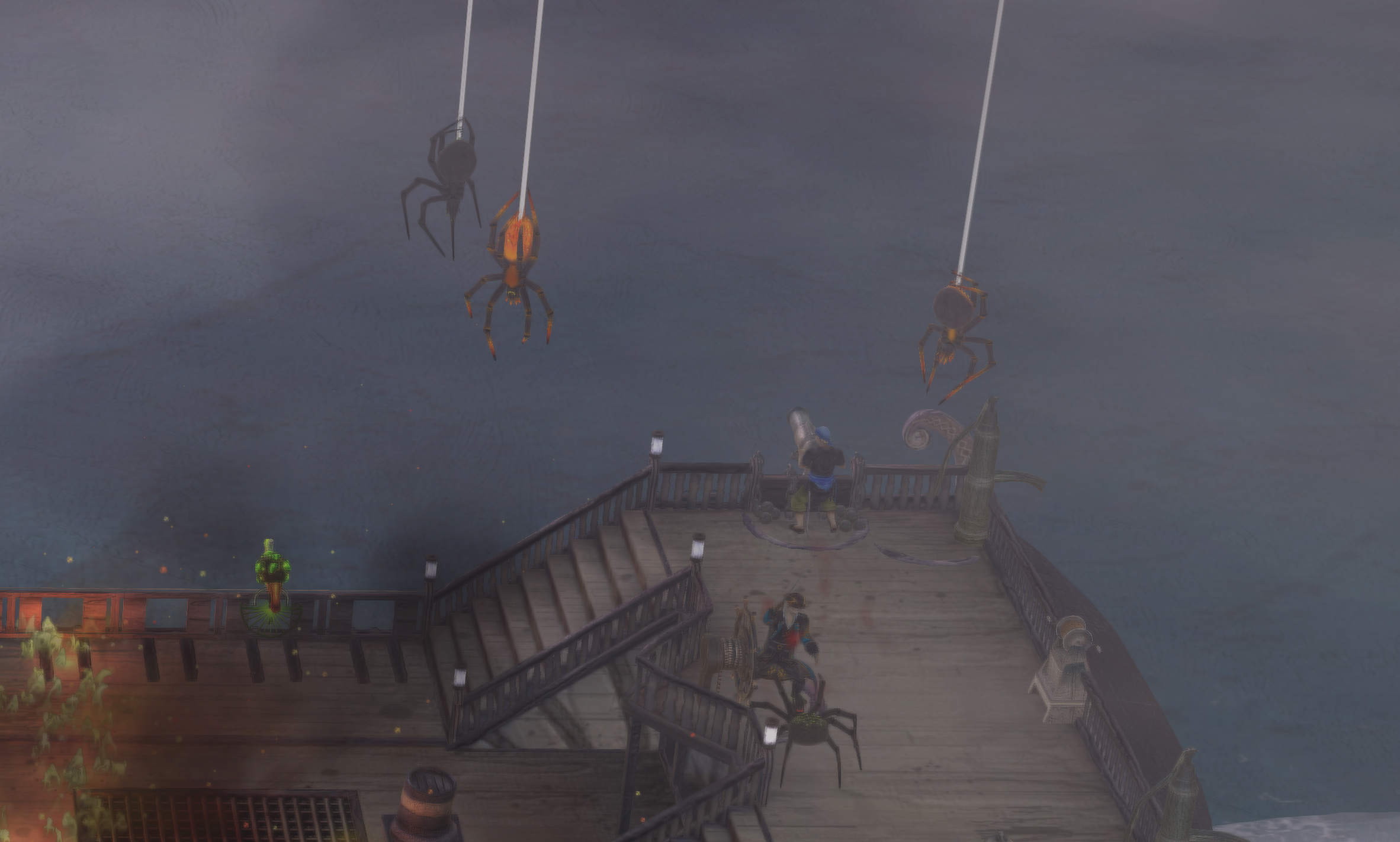 In battle, giant spiders descend on both ships, a constant threat that makes battles particularly dangerous:
