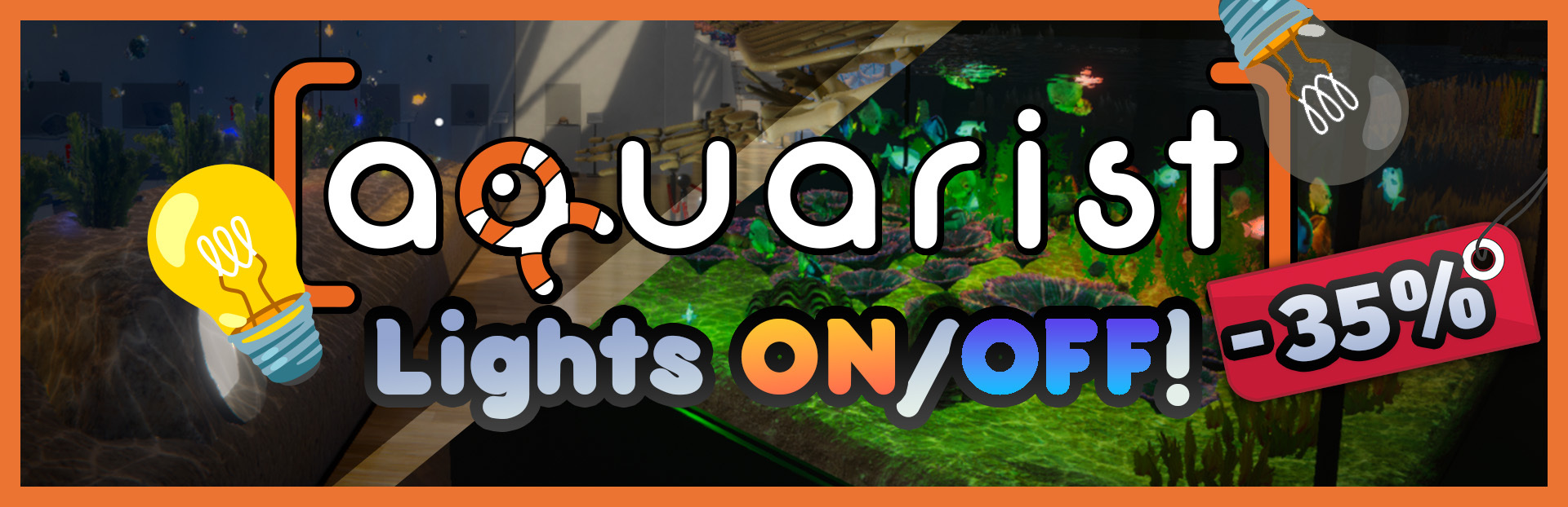 [b]Let there be light![/b]- Aquarist main game update: [b]light switches have been added in all main locations[/b] to play with lighting, from now on you can, for example, set up an aquarium exhibition in the dark. [b]Glowing fish look even better in such an environment![/b] ????✨