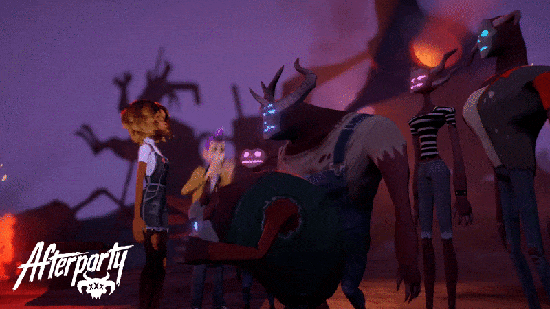Whereas our last game, [url=https://store.steampowered.com/app/388880/Oxenfree/]Oxenfree[/url], had a unifying dilemma that the whole cast was trying to overcome, we wanted to make the situations in Afterparty reflect a much larger cast with their own unique problems. Milo and Lola just happen to stumble through these moments on their own journey, and the game is structured to feel more like a binge-worthy streaming TV series filled with an unpredictable cast.