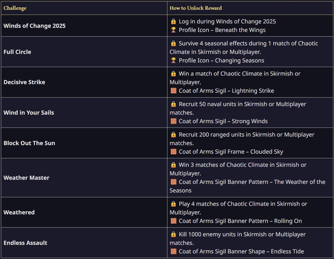 The wilds bloom and wither, kings rise and fall, and time marches on – the Winds of Change spare nothing under the sun. Adapt to the battlefield and outwit the competition in Season Eleven’s newest event, Winds of Change! Push yourself to complete a fresh set of challenges, including several from the newly introduced Chaotic Climate game mode.