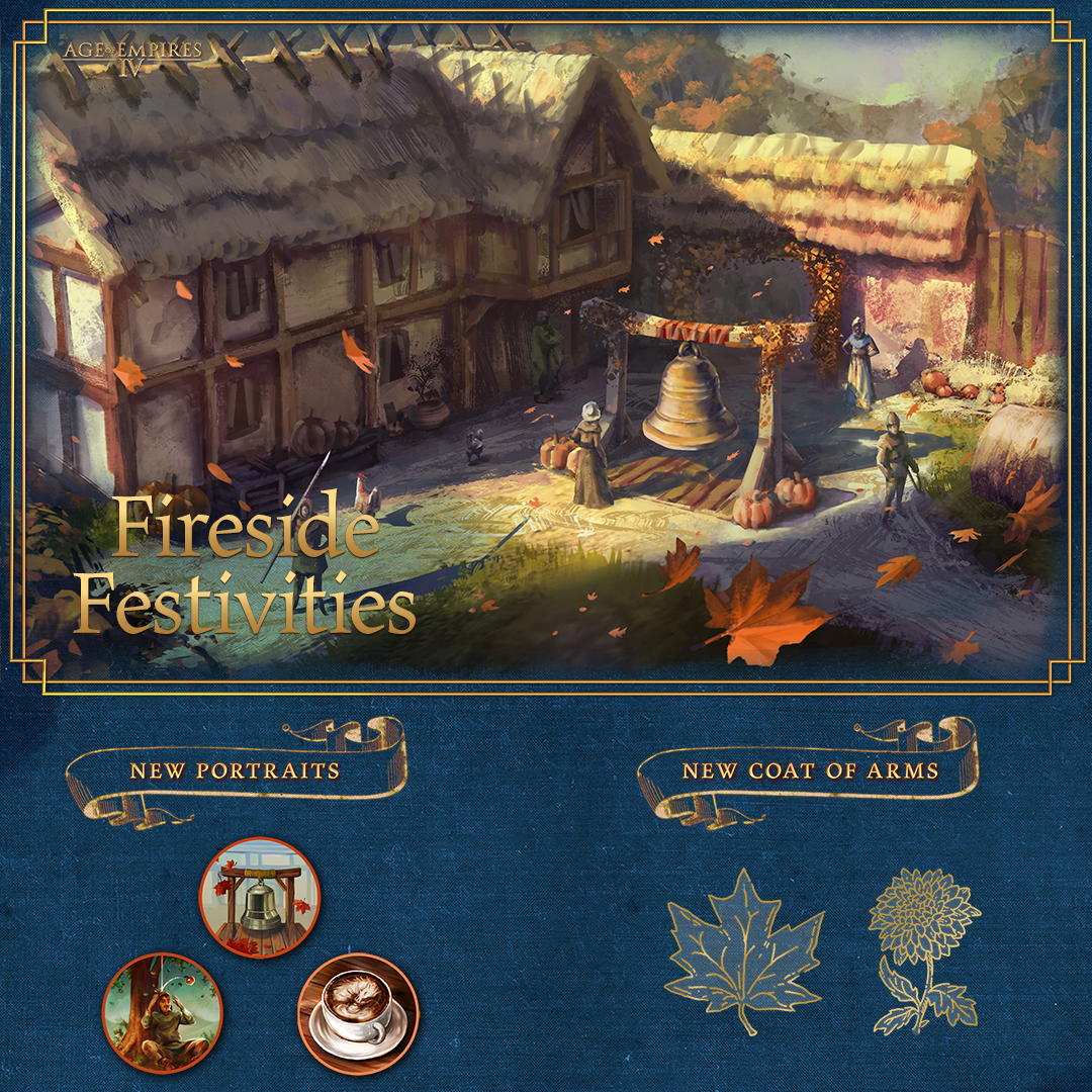 Fall is in the air, and our upcoming major update for [i]Age of Empires IV: Anniversary [/i]Edition([b]November 14th[/b]) is stuffed with goodies! We’re cooking up a new Ranked Season, including a map pool rotation with a side of brand-new maps! And don’t forget to grab a slice of fun with our Fireside Festivities seasonal event!