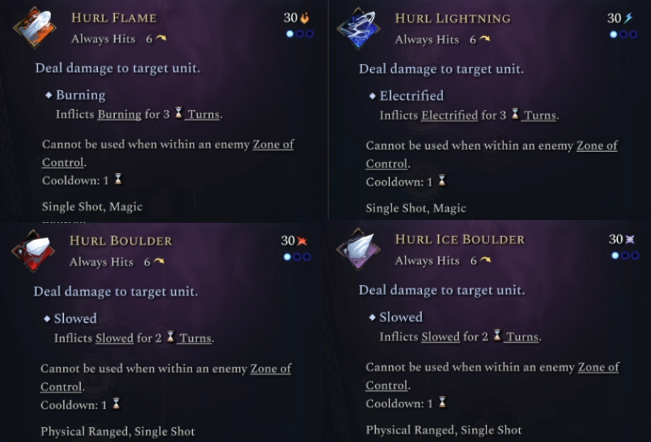 Do you want your Rock Giant to throw a boulder and your Storm Giant to hurl a ball of elemental lightning? Then this tree is your pick. Each giant clan has their own version of this tree and as you spend points you can fine tune this ranged ability to your liking: You can focus on single targets by making this ability more damaging and debilitating or expand its area of effect by making your fire giant’s Hurl Flame into a Fireball.
