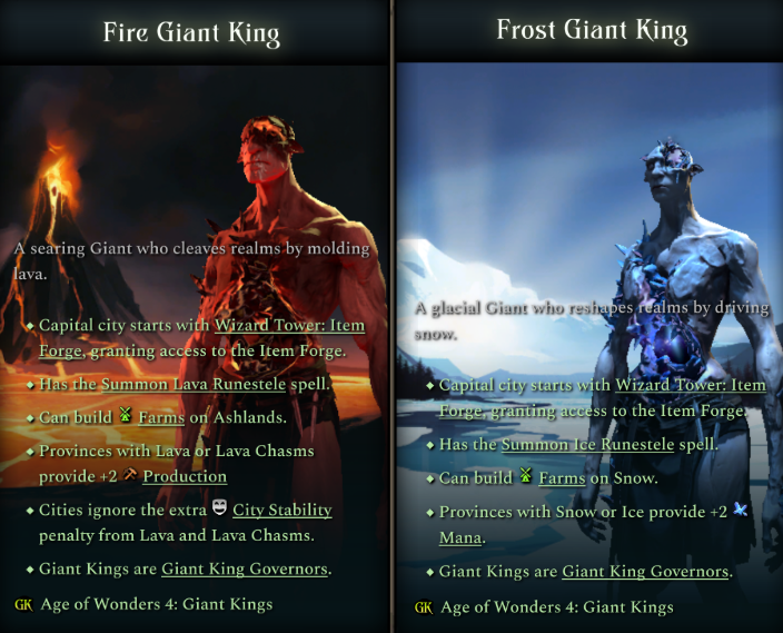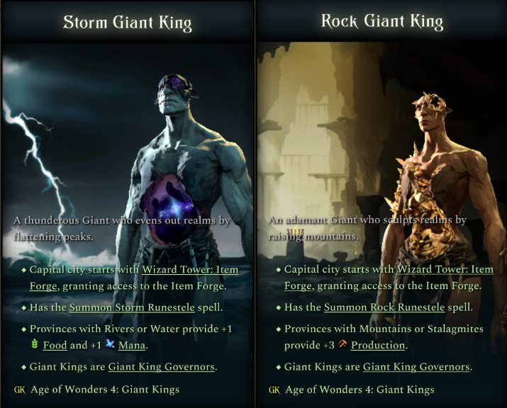 Watch the announcement trailer for a sneak peek of the upcoming features and reveal of the breathtaking key art (we know you’ll want it for the wallpapers ;) ) [previewyoutube=Onr3cSq6oHg;full][/previewyoutube]Age of Wonders 4 Giant Kings Key Features: