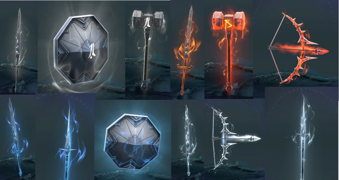 For example the Fire Giant can evolve their Greatsword into the Hammer or a Bow for ranged damage, while the Storm Giant can upgrade their summon to the Shield or the Glave.