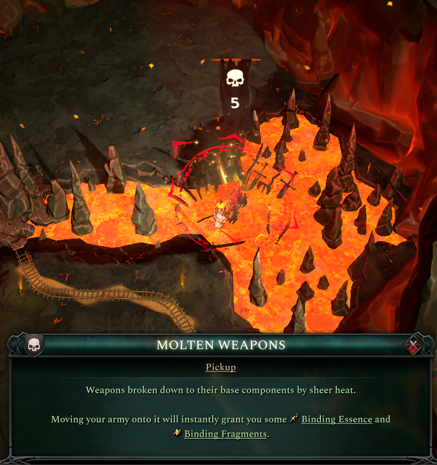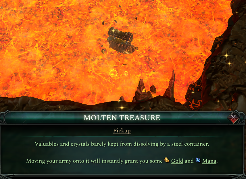 Next to building in Lava, you can also find 2 new pickups in the Lava - the unguarded Molten Treasure and guarded Molten Weapons. These give more than other pickups, since they are harder to reach.