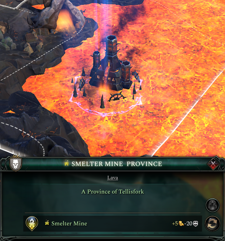 All empires, even those without any special adaptations, can annex lava with these new province improvements. But since they are valuable and are an extreme type of environment. We add a base -15 City Stability penalty to provinces with lava. This represents the harsh conditions and difficulty of extracting resources from the lava.
