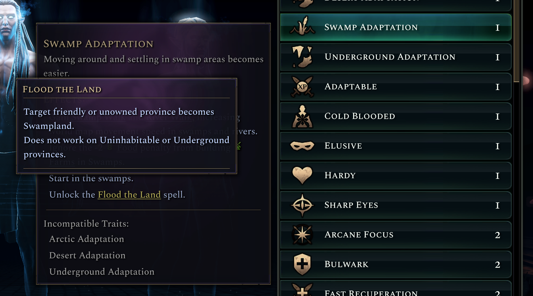 Another issue was balance, we wanted each form to have access to roughly the same number of traits, so we ended up having to make some fairly arbitrary choices to balance things out. Halflings couldn’t have the Tenacious trait because it would be unfair for them to have more trait access than other forms, regardless of how tenacious they might be in fantasy stories!