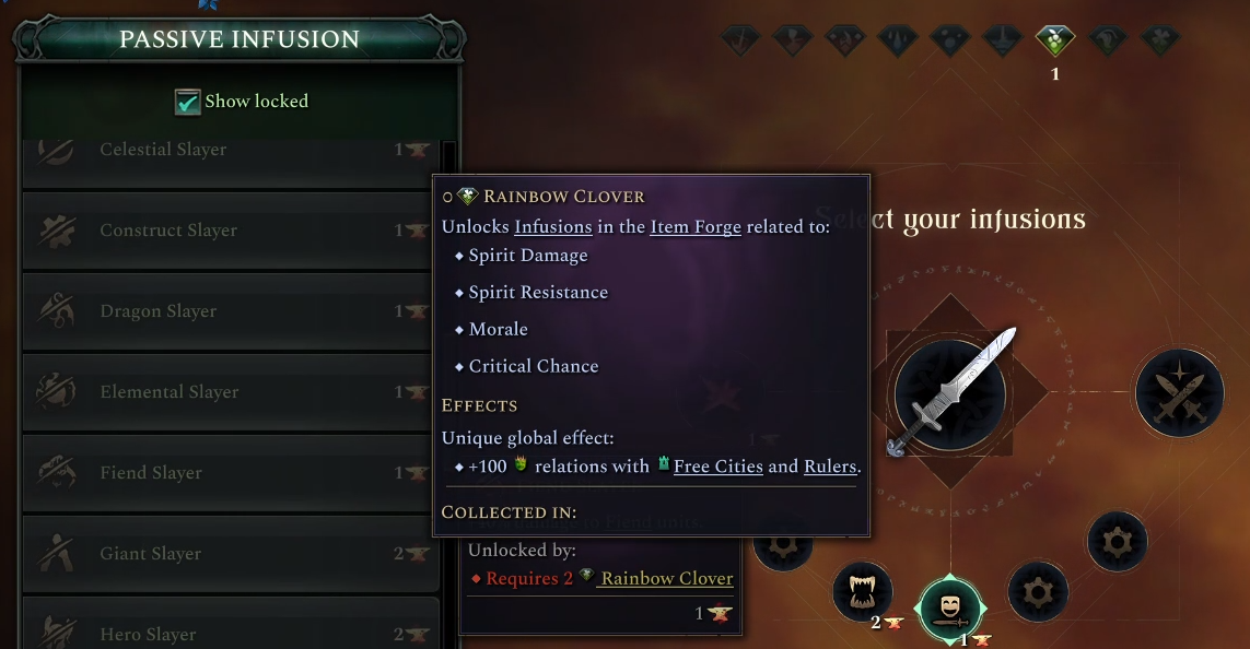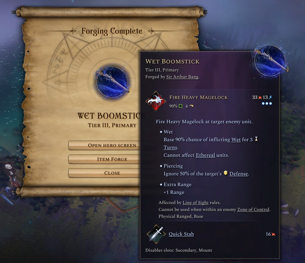 - Can you bring back the limitations on what form can pick what trait? No, this doesn’t match what we want from the game and we think the majority of players want. The code for doing this is still present however, and can be modded in quite easily. Look for the “Incompatible Forms” field in the “AoW Trait” resource if you wish to do this yourself. - What will happen to my old races when I get the new update? We felt that players would not appreciate us giving traits to their races which they haven’t picked themselves, so you should find them mostly unchanged. This will probably mean that you have unspent points, which you can only fix by editing the faction yourself by hand. - Why not give every race terrain preferences, instead of having Adaptation preferences? In Age of Wonders 3 each race had its own favored terrain, and people have requested we bring this back for Age of Wonders 4. The key issue we have here is that the terrain in 3 was designed and painted by the map generator with this design in mind while in 4 it was not. The details would fill a dev diary by themselves, suffice to say it would be a lot of work that could break a lot of things and cause us a lot of issues that we would have trouble fixing. We might revisit this in the future, but it’s off the table right now.The Item Forge