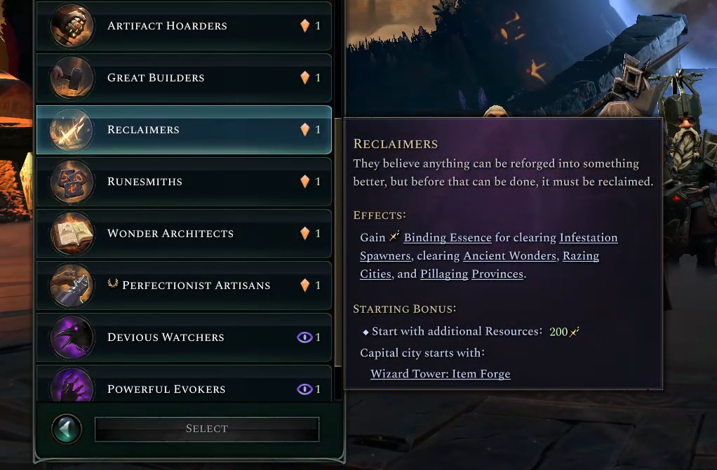 There is also a new Society Trait that will be added to the free Golem Patch that allows you to double down on crafting items in the Item Forge. It starts you off with a bunch of Binding Essence, unlocks the Item Forge from the start and rewards Binding Essence from a variety of world map activities. You can combine this trait together with the Industrious Culture, or the Fabled Hunters or Item Hoarders Society Traits to specialize in Item crafting to create powerful items in the early game… or maybe to become a trader in powerful items.