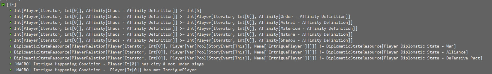 [i]A condition script for the Dawn of Calamity Intrigue Happening. It requires an AI Ruler to have at least 5 chaos affinity, and no other affinity that surpasses it.[/i]