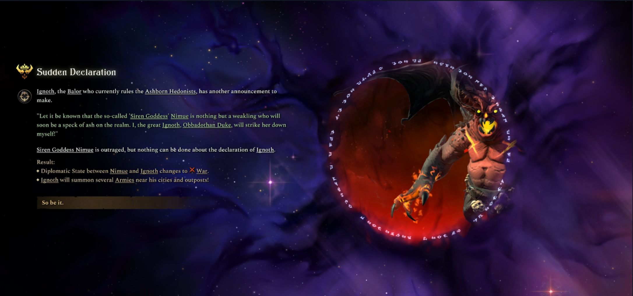 Age of Wonders 4: Ways of War will feature six (6) unique Intrigue Happenings, with a total of 90 unique Events.