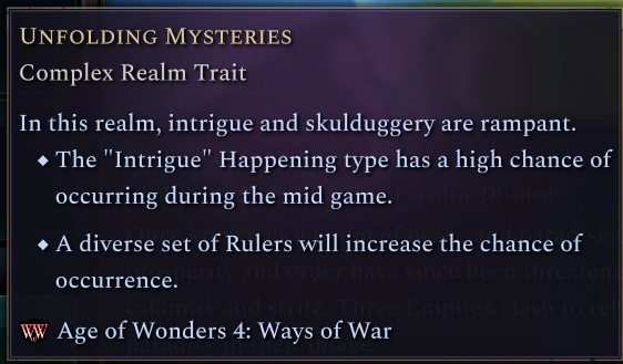 [i]The new Paradise Divided Realm Template and Unfolding Mysteries Realm Trait will increase the likelihood of an Intrigue Happening to… happen.[/i]
