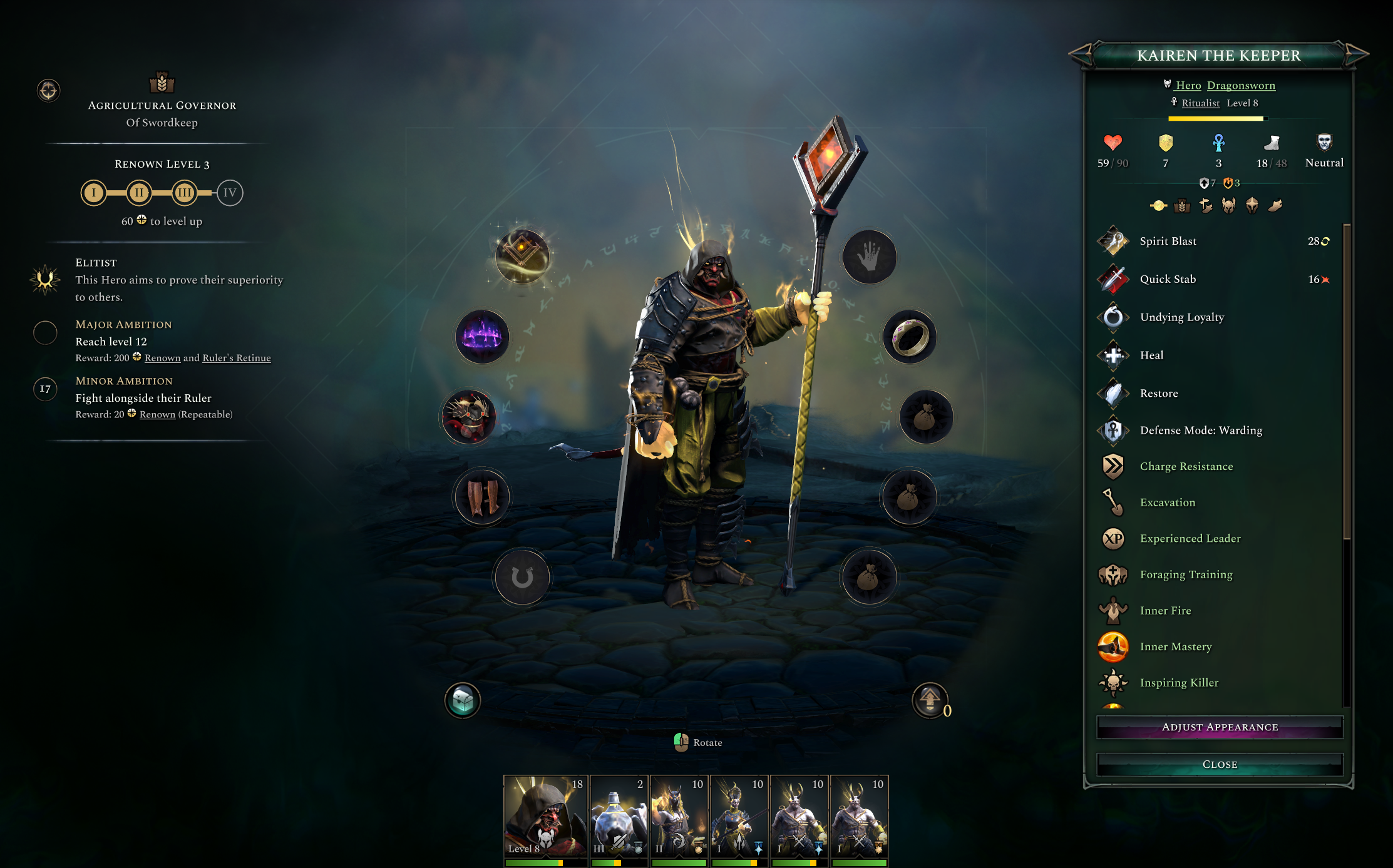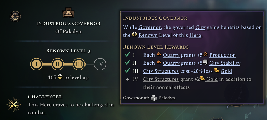 You may have noticed that the Governance trait has levels, these are unlocked by gaining Renown, further empowering the Governing effects of that hero. How do you gain renown you ask? Allow me to enlighten you about: