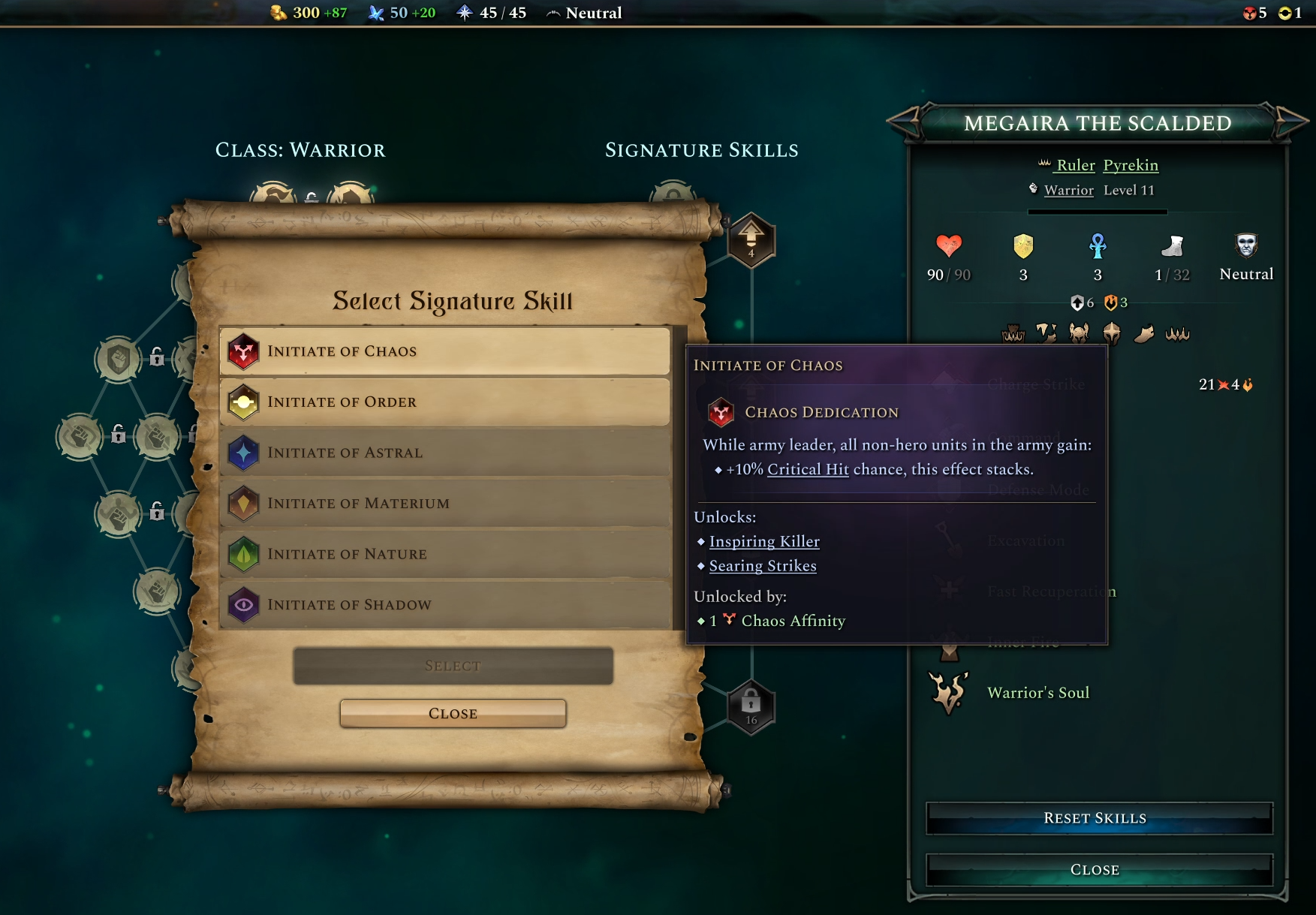 [b]Initiate[/b] grants access to build-supporting hero skills, such as the pay-off for attacking burning enemies in chaos, or the leadership buff to animals in nature.