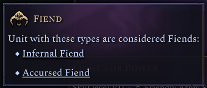 Of note, we updated the other fiend units to be known as Infernal Fiends, so we can make the distinction on spells when referring to Infernal Fiends, Accursed Fiends or both by just referring to Fiends.