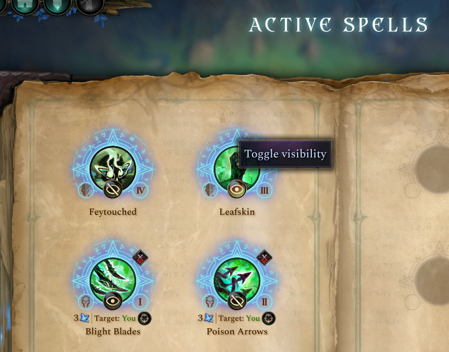 Finally, not everybody likes changing their units visuals, either Enchantments, Minor or Major transformations. To address this we’ve added a Toggle Visibility button to the Active Spells page of your Spellbook.The only visualizations that we can’t toggle are those that grant you wings (for gameplay purposes) -