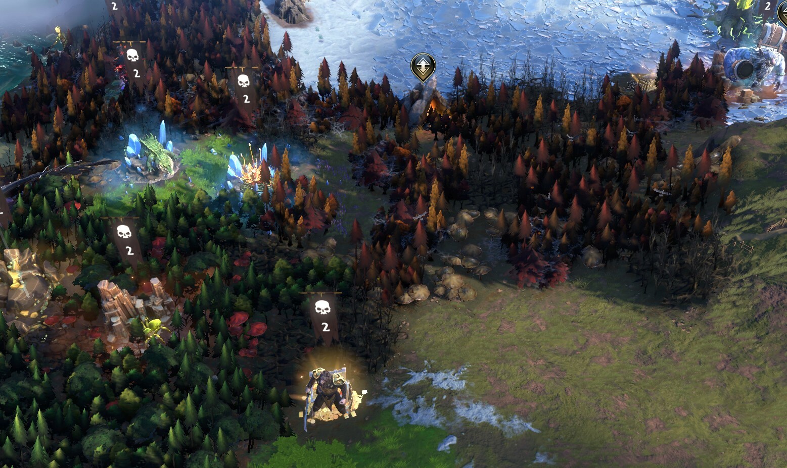 We saw feedback on the forest visuals from the forums, and agreed with the sentiment. We decided this was the perfect time to take another stab at them by adding more variety and interest via additional meshes, particle FX and colour. Using previous Age of Wonders games as inspiration we added things like little mushrooms and cobwebs. Before everything was a drab range of greens, now have fall colours for the highlands biome, pinks for the arctic, every forest biome got a pass. We’ll continue to make an effort polishing the game, and adding variety when and where we can so please keep the feedback coming!