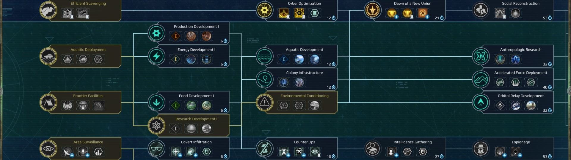 The streamlining of the terrain interactions has meant we could remove a number of techs from the economy tree, which was generally felt to be overloaded. To take this further, a number of other techs have been removed and the tree has been rebalanced in order to make systems more useful.Simplified Colony Economy