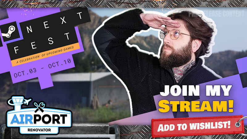 We’re back with a new stream from the [b]Airport Renovator[/b] demo to celebrate the [b]Steam Next Fest[/b] October Edition.