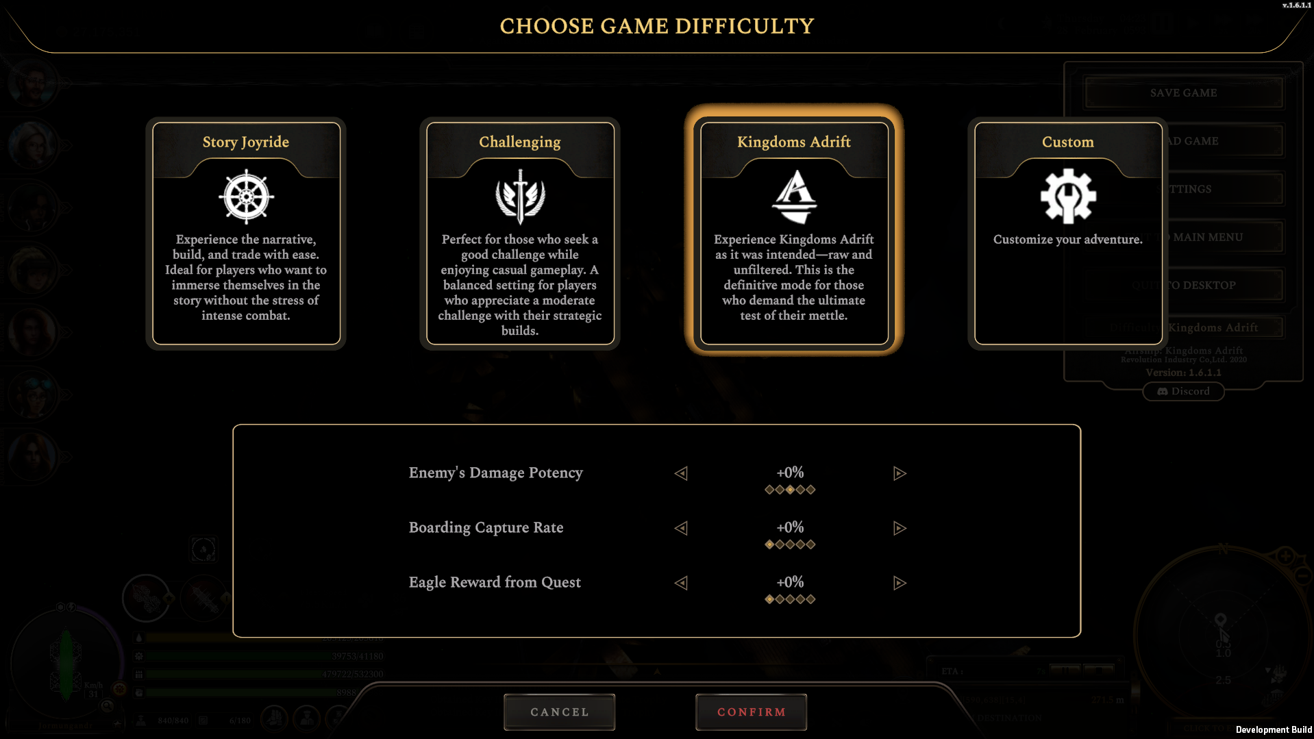 Once you open the menu, you’ll see a familiar difficulty settings interface, similar to the one available at the start of the game. Here, you can adjust the difficulty or switch to a custom difficulty mode. Please note that if you lower the difficulty, achievements will be disabled—even if you later increase the difficulty again.