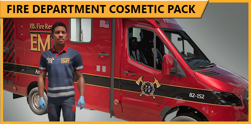 Show off your support for the emergency services with this exclusive fire department-themed cosmetic pack! Customize your gear and your vehicle with unique items inspired by our firefighting heroes.