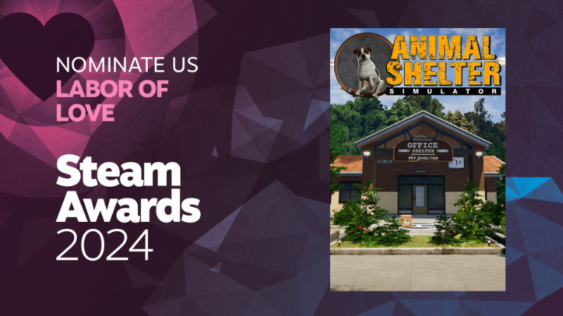 This nomination means a lot to us, as it celebrates games that have been continuously supported and improved over time. We couldn't have achieved this without the incredible support from our community. Thank you for being with us on this journey! If you think Animal Shelter deserves this award, you can vote for us! ???? Let's make this happen together! ???? https://store.steampowered.com/app/1239320/Animal_Shelter/ [url=https://store.steampowered.com/app/1239320/Animal_Shelter/]