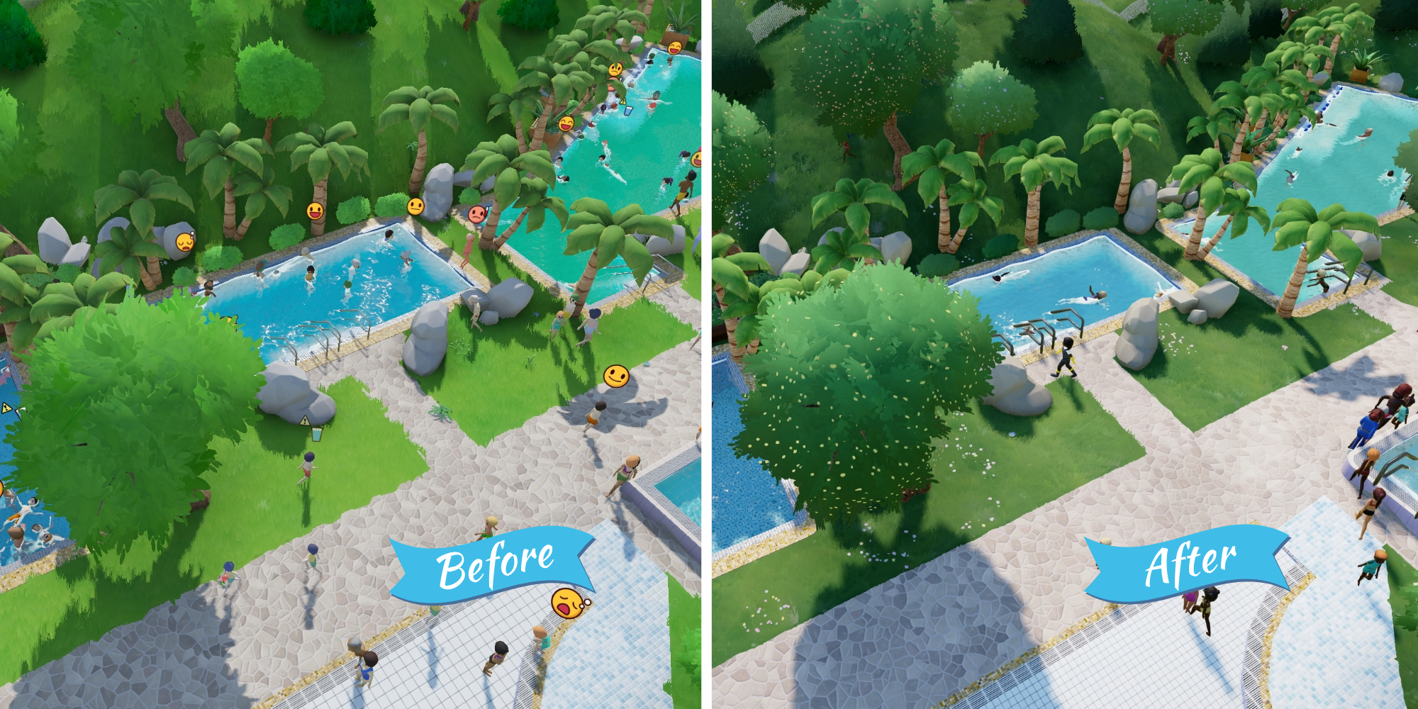 One of our main focuses was the color palette: gone are the overly bright hues. Instead, Aquapark Tycoon now shines in natural tones. Trees, plants, and grass have a more authentic, vibrant feel. We hope the new look makes you fall in love with your parks all over again! ????