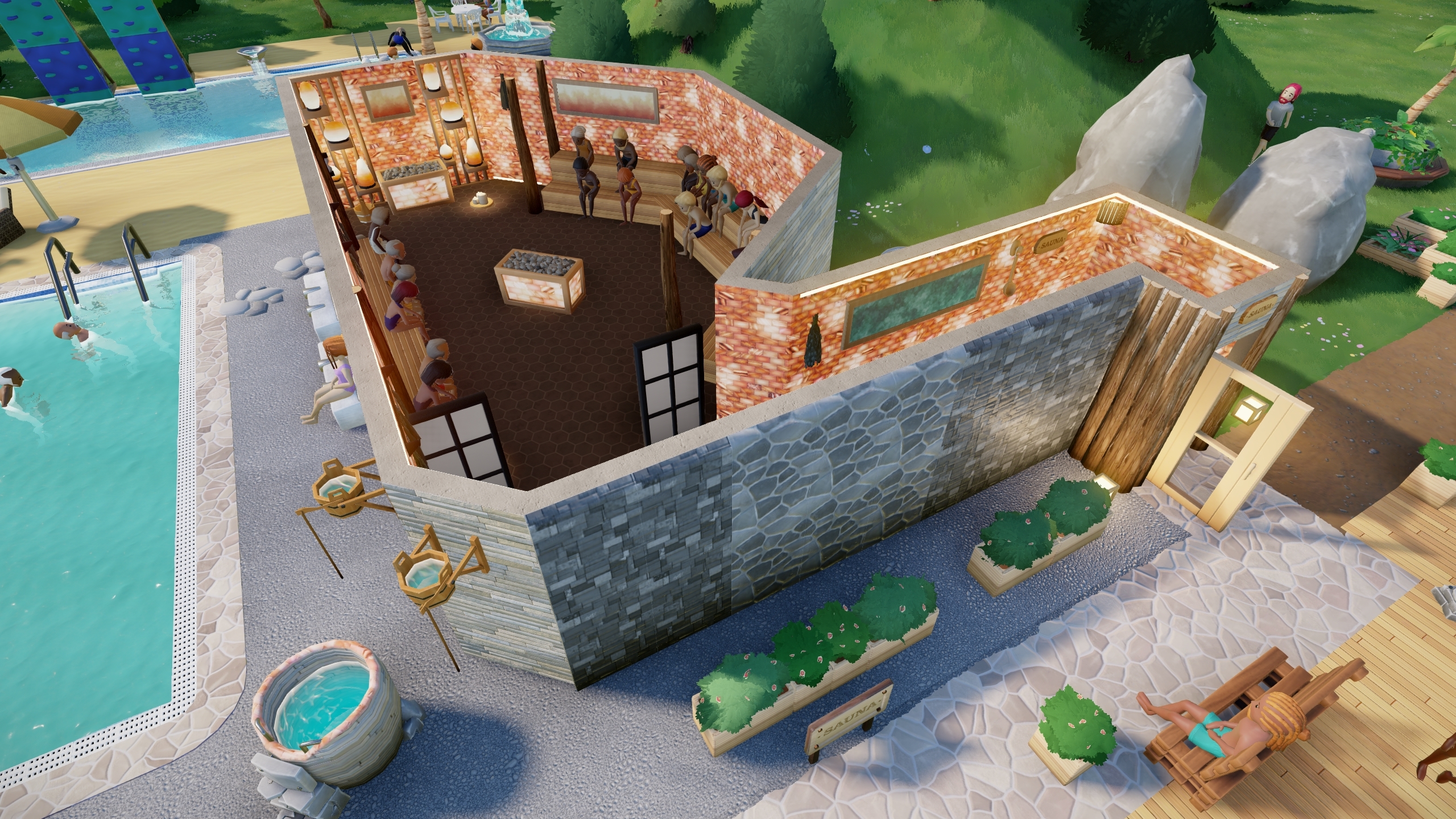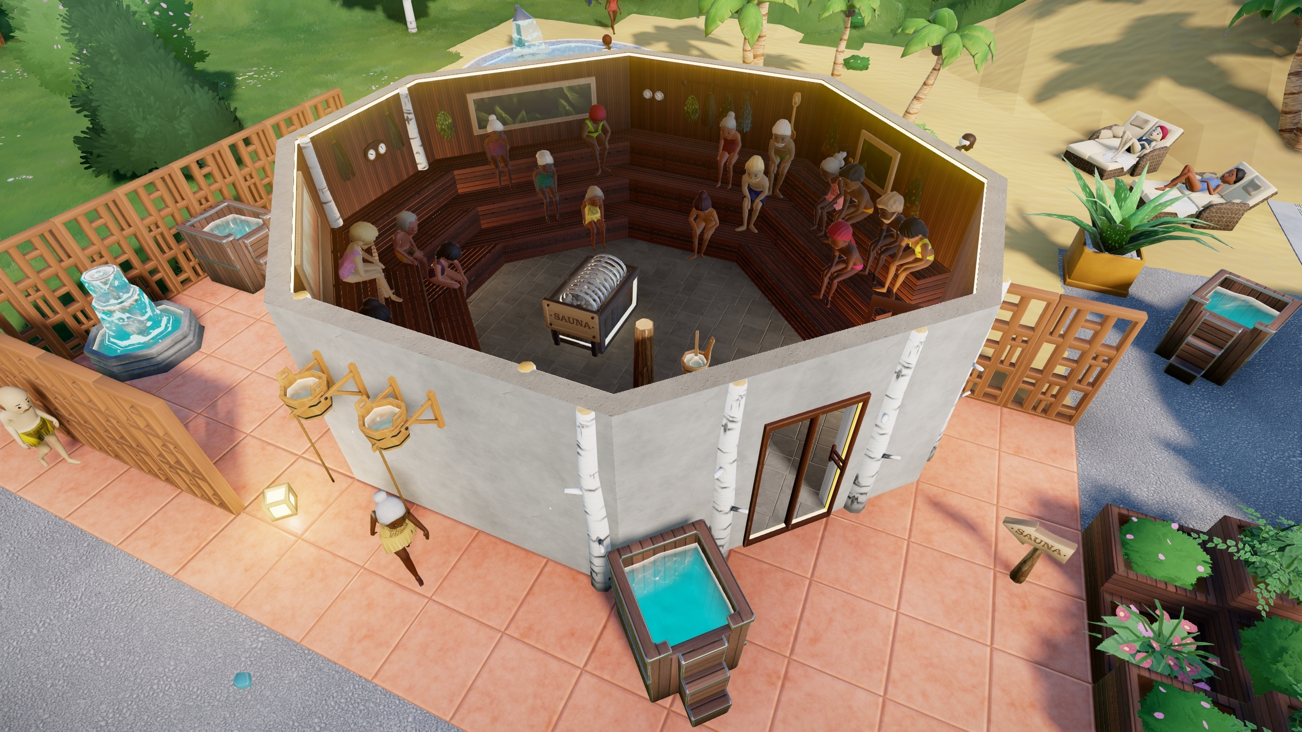 That’s enough sweating for today! We hope you’ll have just as much fun building and customizing your saunas as we did. By the way: We are currently looking for [b]playtesters[/b]. If you're interested in testing Aquapark Tycoon for us, make sure you head right over to our [url=https://discord.gg/aquaparktycoon]Discord [/url]for more info on how to sign up!????