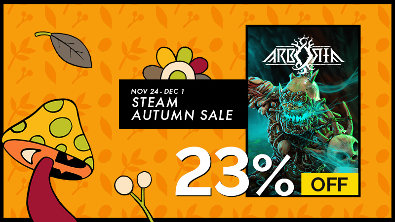 Get [i]Arboria[/i] [b]23% off before December 1[/b] and jump into Durnar, an underground world darker than autumn evenings. Save your tribe while having fun destroying creepy monsters one by one.