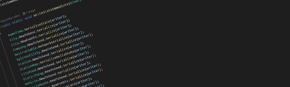 AotR (Art of the Rail) is focused on providing [i]scale[/i], which I feel is neglected by many games today, and is a core part of tycoon games of the past. So the key focus has been to meet that scale on all sides. Our special R&D team (called "Enterprise" internally) took my proof-of-concept for a highly optimized networking approach and made a new system called RocketNet. This stuck to a "first principles" approach. Everything on the internet is sent via an "array" (think: collection) of bytes (well, technically speaking it would actually end up as bits but that's not strictly relevant here). So instead of "wrapping up" game data as "messages" (think of them like emails), we write those bytes directly into a collection, zip up the collection, cut that collection up into segments (1200B), and send those.