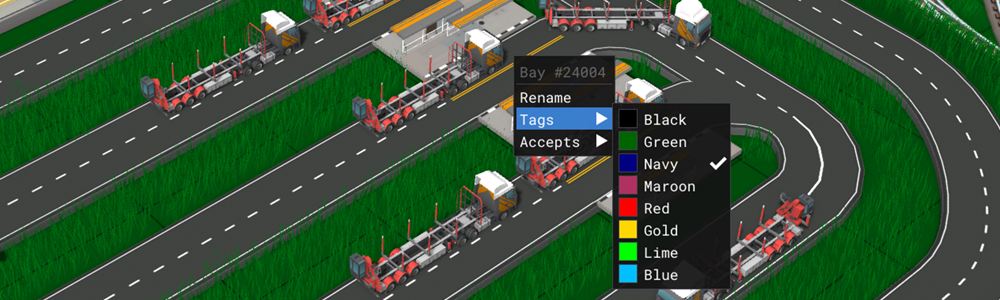 Similar to tags in games like Factorio, you can tag vehicles and bays and then use those to do your own load balancing. This is in addition to the regular tools such as setting a bay to a particular cargo type.