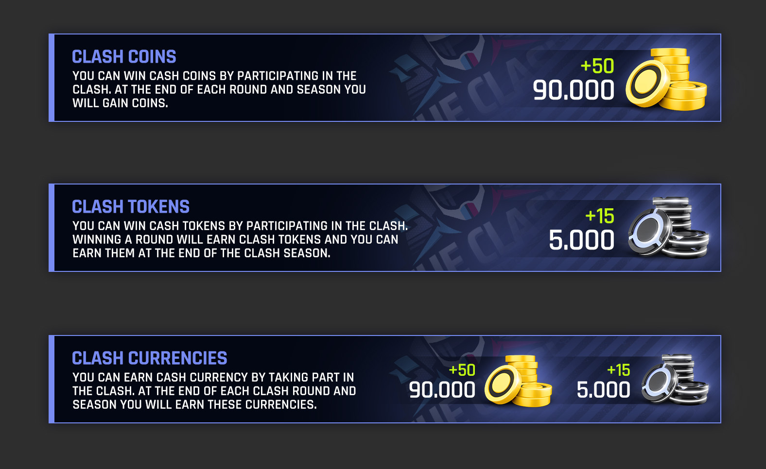 We're launching The Clash Shop! It's time to earn super exciting rewards for your hard-fought Club victories. You will earn now a new currency through The Clash and you will be able to spend it on a dedicated shop where you'll find lots of valuable items you won't find anywhere else in the game (including Car Keys!).