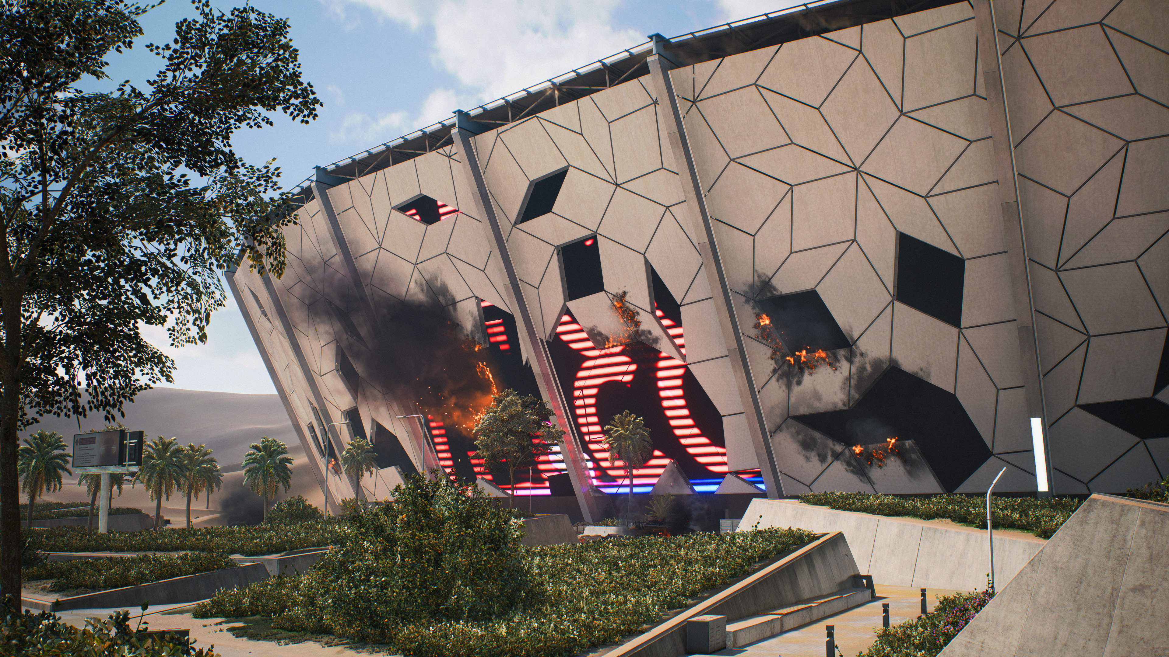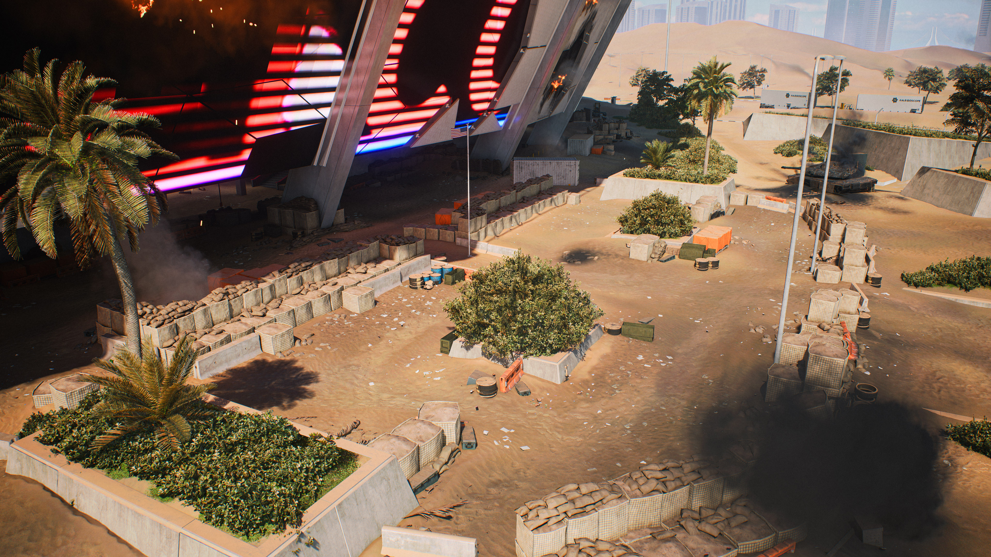 We’ve also added cover and line-of-sight blockers that fit within the themes of each flag. For example, we expanded the Promenade’s exterior with more structures that match the architecture of the Stadium itself alongside a clear military presence buildup in the location.