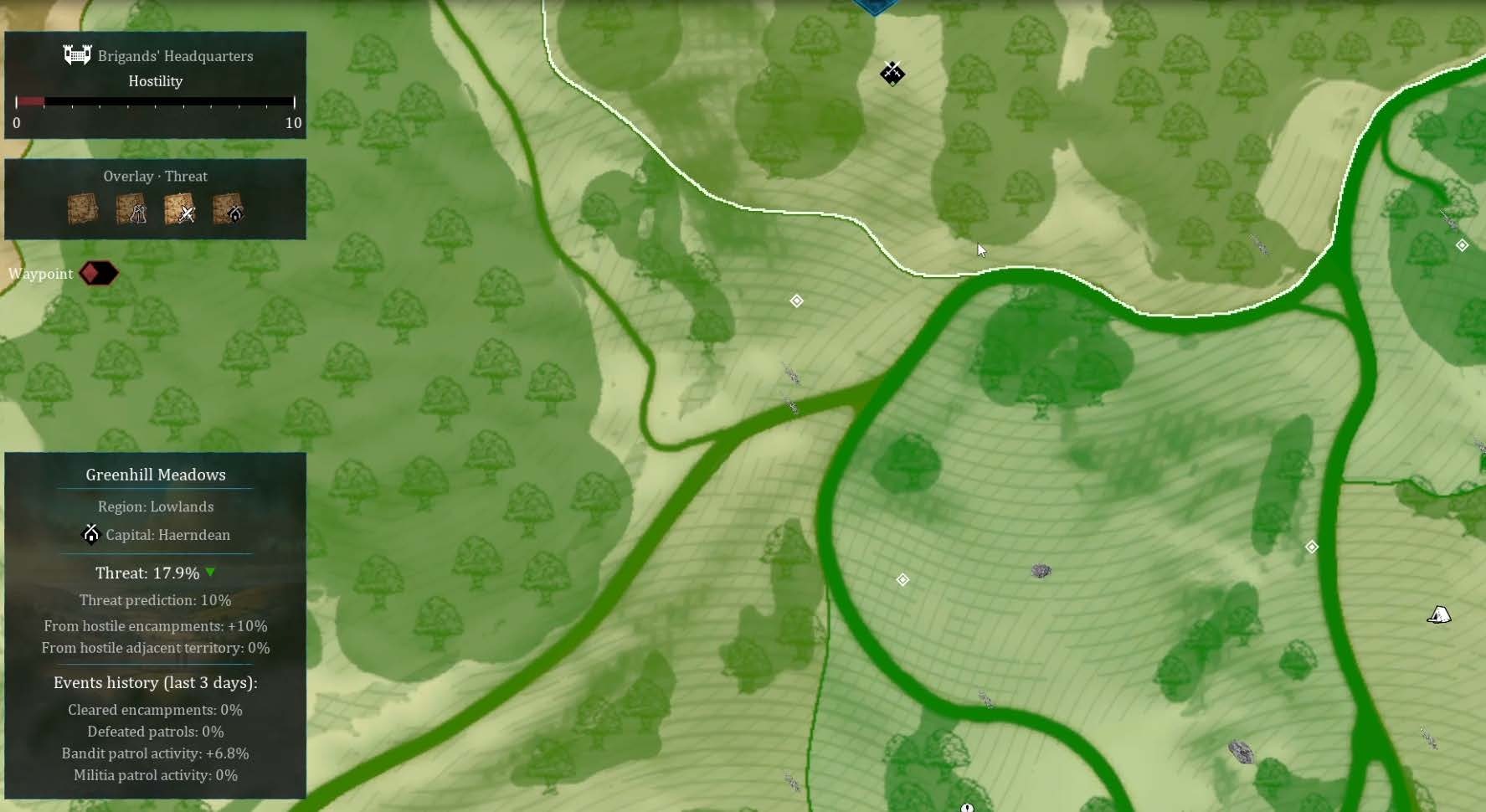 The safety of the territory is important and any nearby enemies will contribute to the overall threat level of the adjacent villages.