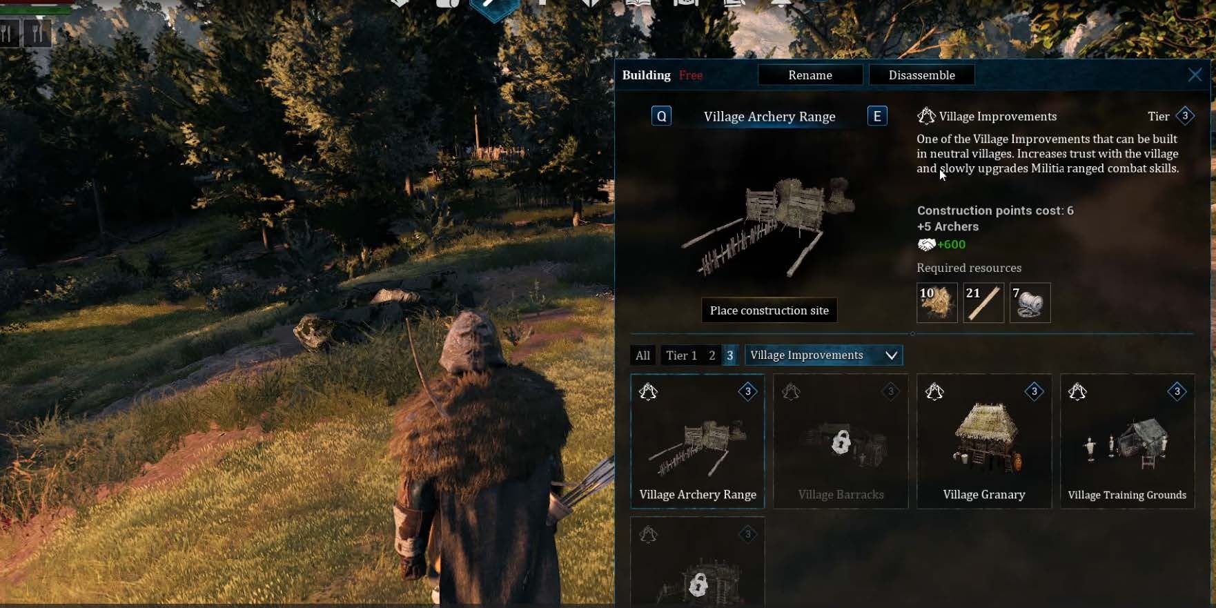 VIllage improvements can be used to directly affect the prosperity of that population. In this example, the archery range will add +5 Archers to the pool of militia available for hire.