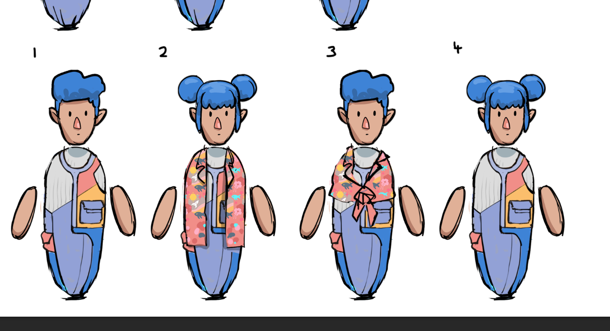 A lot of fun designs were considered for these clothing types! Here’s a glimpse of some: