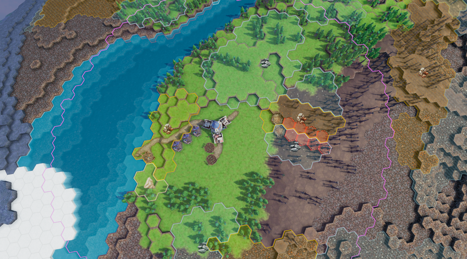 Isaac has also been working on the edges of the hexagonal tiles - they're now beveled and roughed up, which makes the world on Kewa's back look so much more real. It also has the advantage of hiding some pesky texture seams! Of course, this is just a first pass, and Tom or Rafał will make better textures so Isaac’s initial efforts work well for different tile types. Isaac also reassured us that there’s tons of environmental assets still to come. No pictures of this yet, sorry! What I can show you is puffy fields. Sounds weird, but that’s pretty much what they are. Dirt and fields aren’t perfectly flat, so Isaac has done a great job putting this beautiful, perfectly natural imperfection into the game.