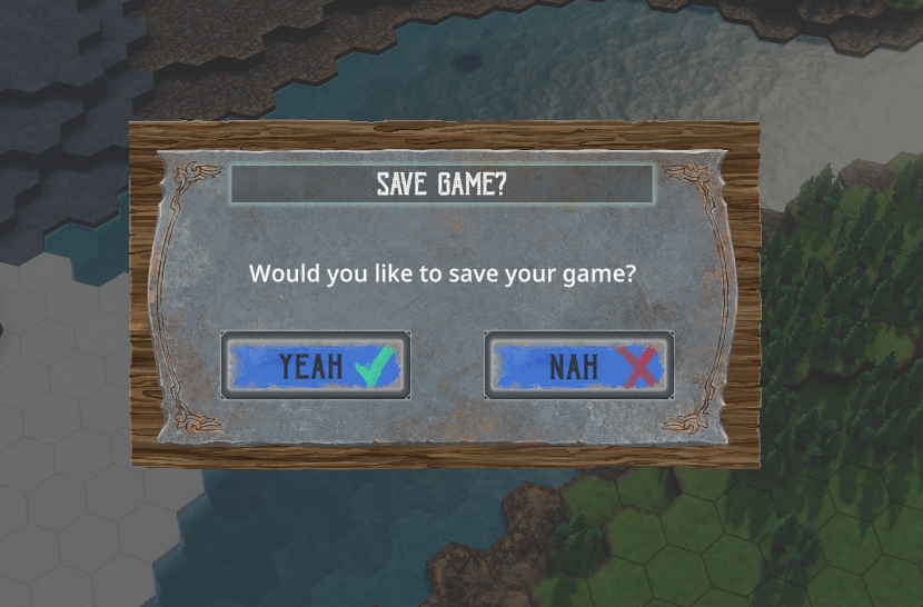 For Aussies and Kiwis, “yeah nah” and “nah yeah” are essential pieces of slang in our vocabularies. So naturally, Mereana simply had to include them while working on the Save/Load menu. Given that everything is very much still a work in progress, we’ll probably take them out… unless…? Tell me what you think and we might keep them in ????