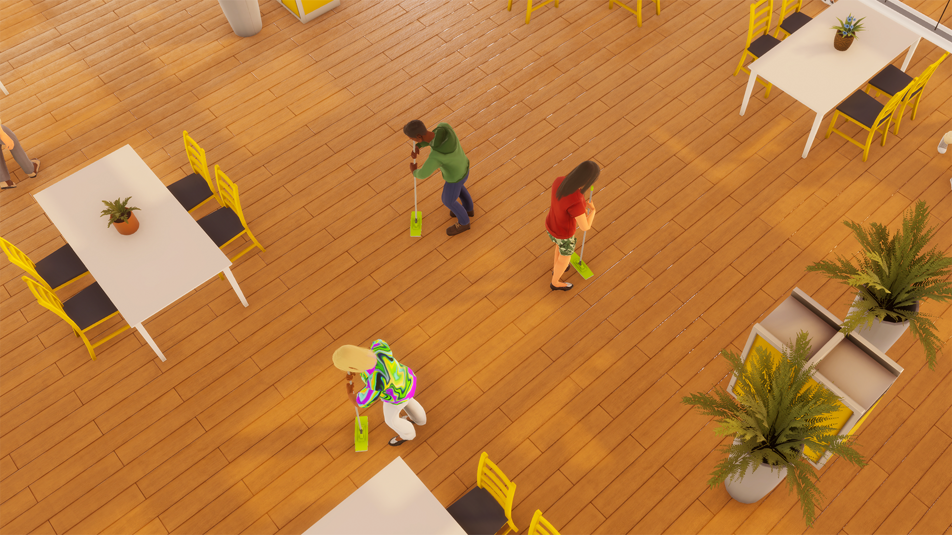 Your cleaners are no longer invisible! Now you'll see the employees walking around and cleaning, so you don't have to wonder why they didn't show up to work! And while we were in there, we also improved the cleaning animation!