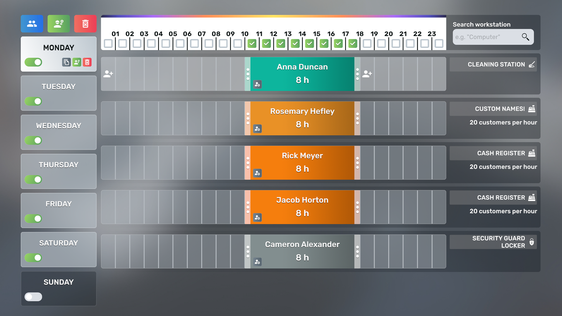 "Wow, HR did a great job setting up my company's schedule!!" That has probably not been your reaction to the auto-schedule feature in previous versions of the game. Well, that's about to change! The auto-scheduler now checks employee demands and splits the shifts a lot better to keep them happy. You can even choose to only autofill one day instead of the whole schedule! And if you want to manually control things, the scheduler UI is much more powerful now. You can copy/paste specific days and rename workstations to quickly search and find things. Plus, the new employee search filters make it much easier to find the exact employees you're looking for!