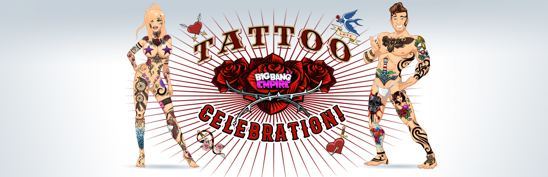 Are we getting under your skin yet? During our Tattoo Special, from [b]12/08/2021 to 13/08/2021[/b], you’ll find hot Tattoo Surprise Boxes at the Sex Shop! In each box, you will find an item from the exclusive “Inked & Sexy” set - consisting of 4 items and a gadget - which decorate your hot body with great new tattoos. In addition, every day during the special, you’ll get to refresh your Sex Shop offers three times for free. Make sure to stop by the Diamond Shop to get your very own “Inked” package featuring a load of sparkling diamonds! The Casino will also open its doors during the special with no win limits! Have fun! Your Big Bang Empire Team