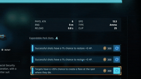 - Valued Customer: Reduces all Credit costs (e.g., SE reroll, weapon mod reroll, Chillax Corner purchase, etc.)