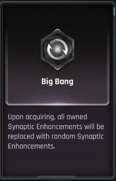 - Big Bang: Randomly swaps out all currently held Synaptic Enhancements