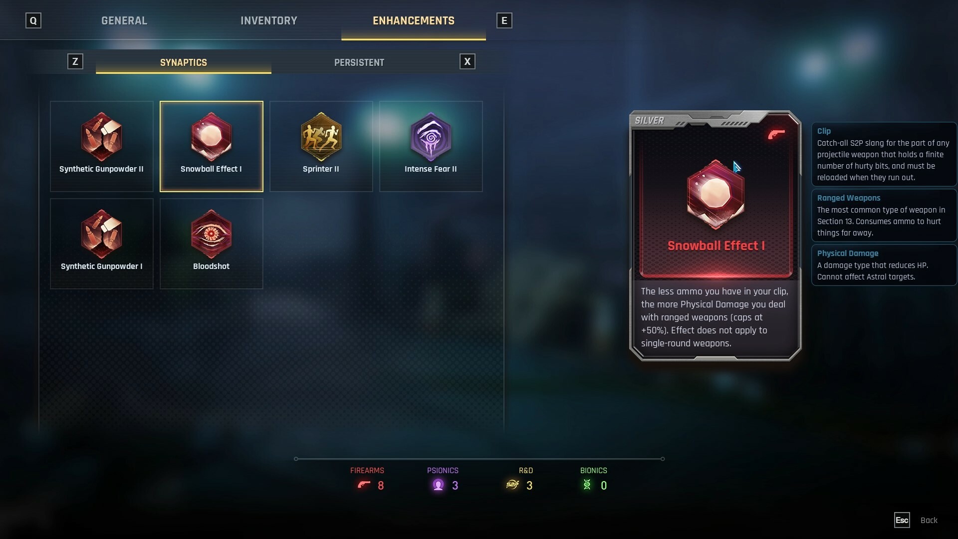 - Adjusted the values of Synaptic Enhancements that affect movement speed, accordingly