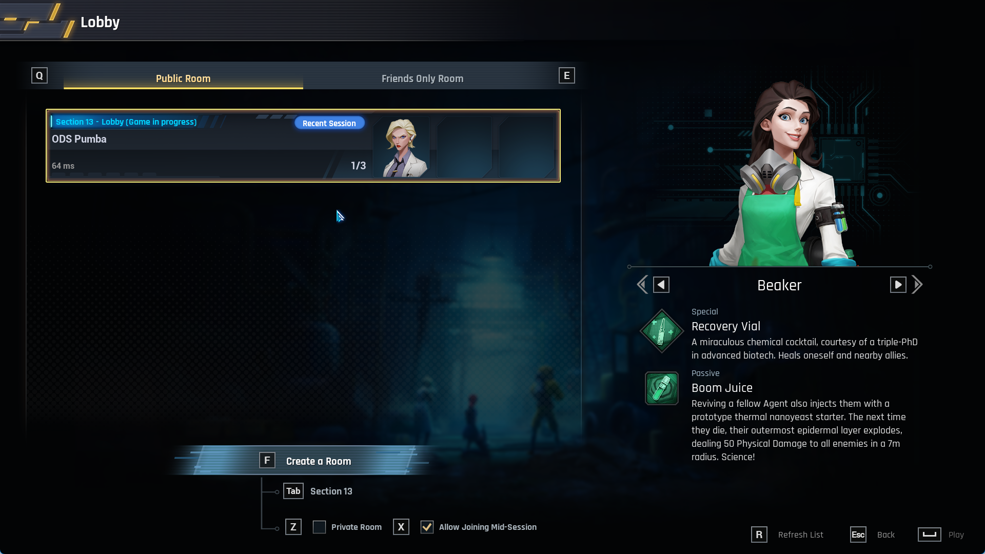 - For in-progress sessions, other Agents will be able to join the room as long as the squad has not reached the very first Safe Room (at the end of the Parking Lot level)[list]