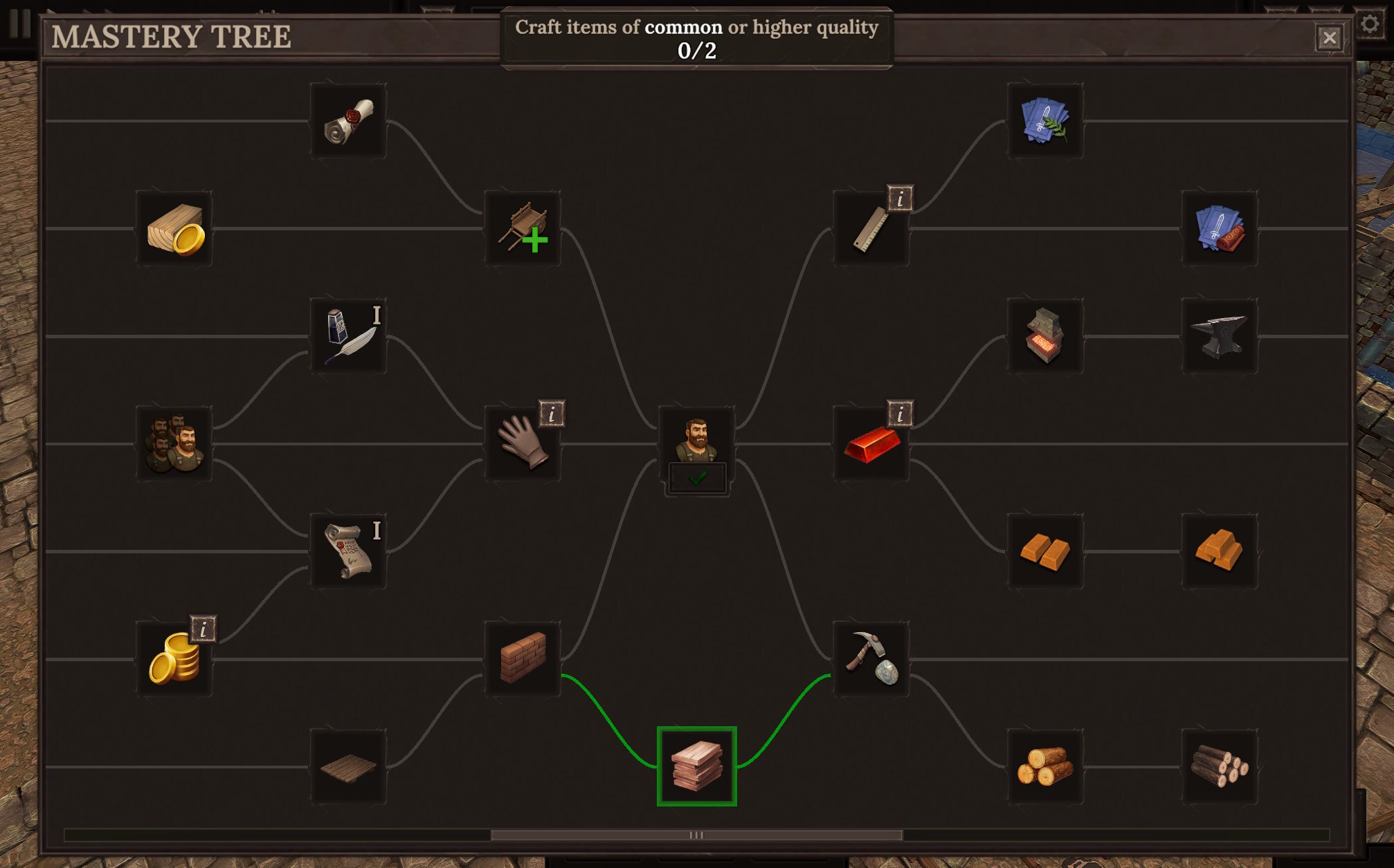 [hr][/hr]I thought a lot about it, and I wanted to make a change where you can really go any route you want at the start and experiment with each play-through. If you prefer to unlock hiring upgrades first, you should be able to do that. If you want to start producing jewelry as fast as possible, you should be able to do that, too. To achieve this, I decided to remove shield currency from the game entirely. Now you get a single goal, for example, "Craft 10 items of common or higher quality," and when you do that, you gain the ability to unlock any mastery that you want (that has all the required masteries already unlocked, of course).What this unlocks