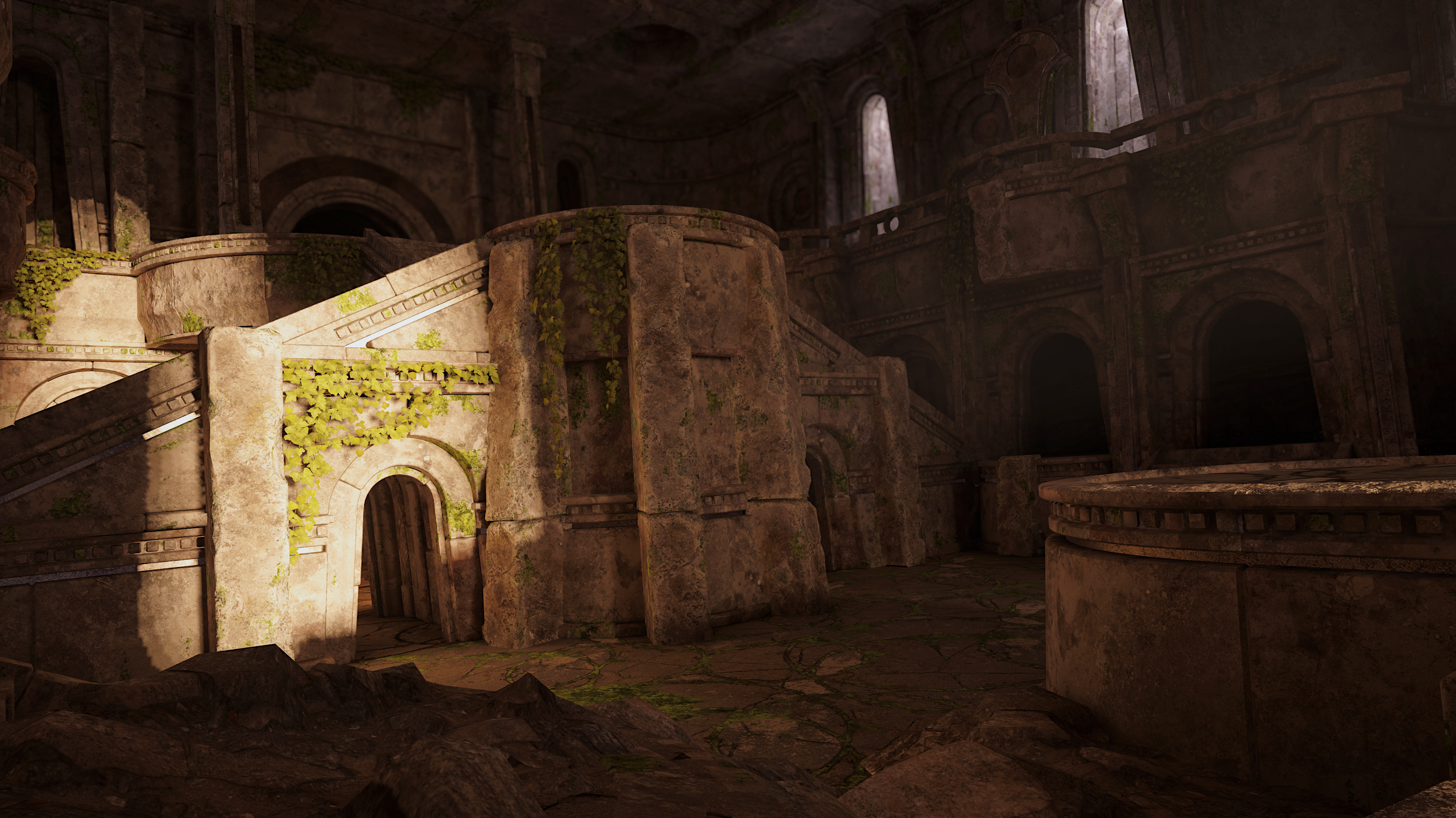 The ancient Dalgarians' architecture is a whole different animal compared to the modern structures of Byeth, so when it came to level design we really wanted to emphasize that. What is really missing from these preview images is a human for reference of scale, but maybe that is better because hopefully it will make your first VR visit here special to see it for yourself.