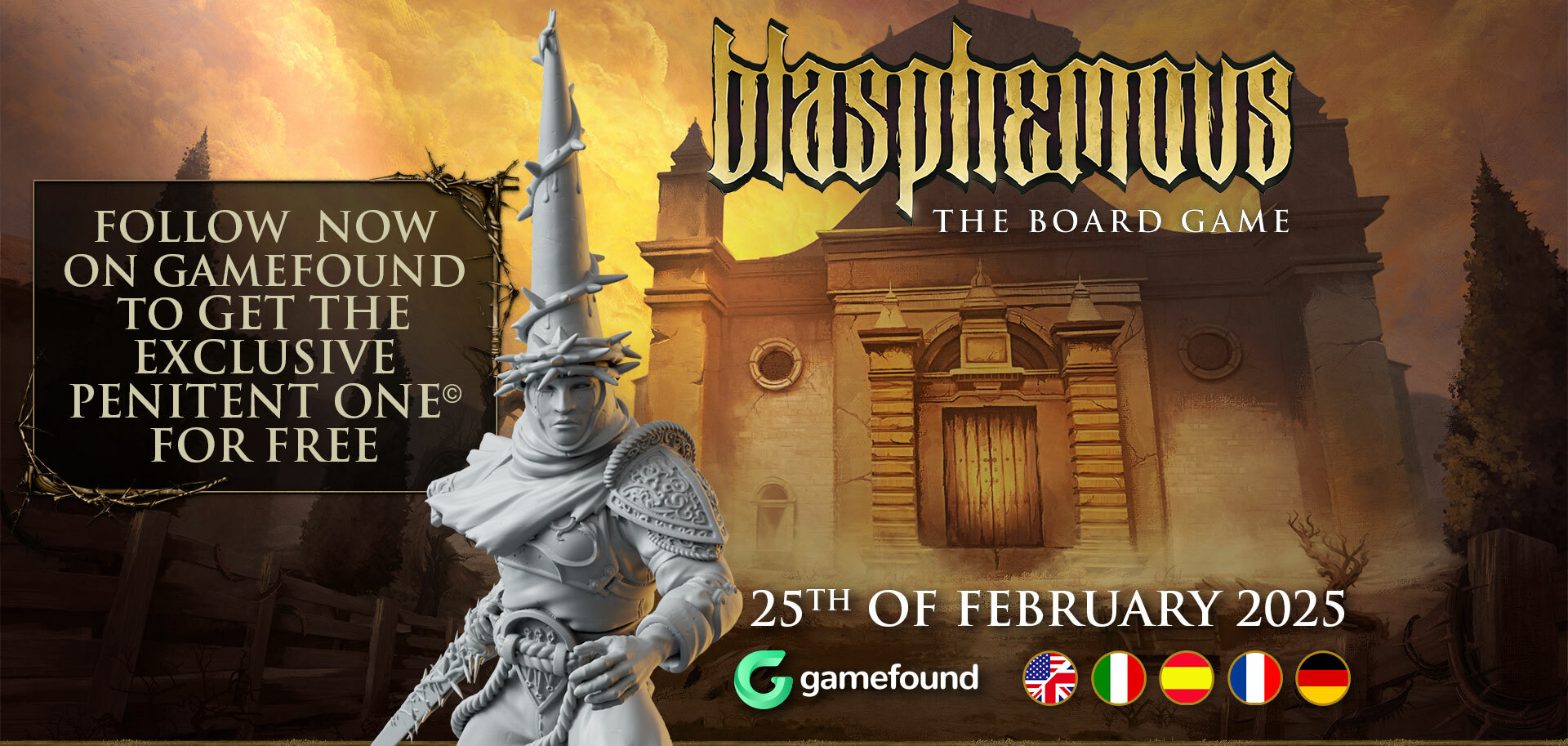 Sinners! Praise the Miracle, for the [b]Blasphemous: The Board Game[/b] campaign goes live on [url=https://gamefound.com/en/projects/lms/blasphemous-the-boardgame?refcode=MpClbF1cqUeuLn1sh55DkQ]GAMEFOUND[/url] on 25th February!