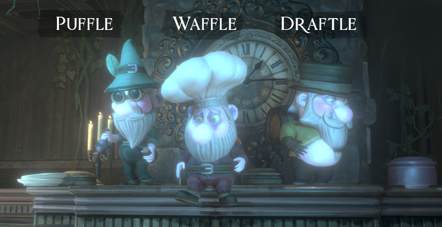 This is no ordinary kitchen. It’s inhabited by three friendly (and occasionally mischievous) gnomes: [b]Puffle, Waffle[/b], and [b]Draftle[/b].