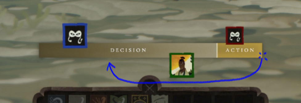 When you cross over from the Decision Phase to the Action Phase, your chosen Skill becomes locked and you can no longer change it. Your character icon on the Sequencer will also start moving at a different speed, which this time is based on the [b]speed of the skill you chose.[/b]